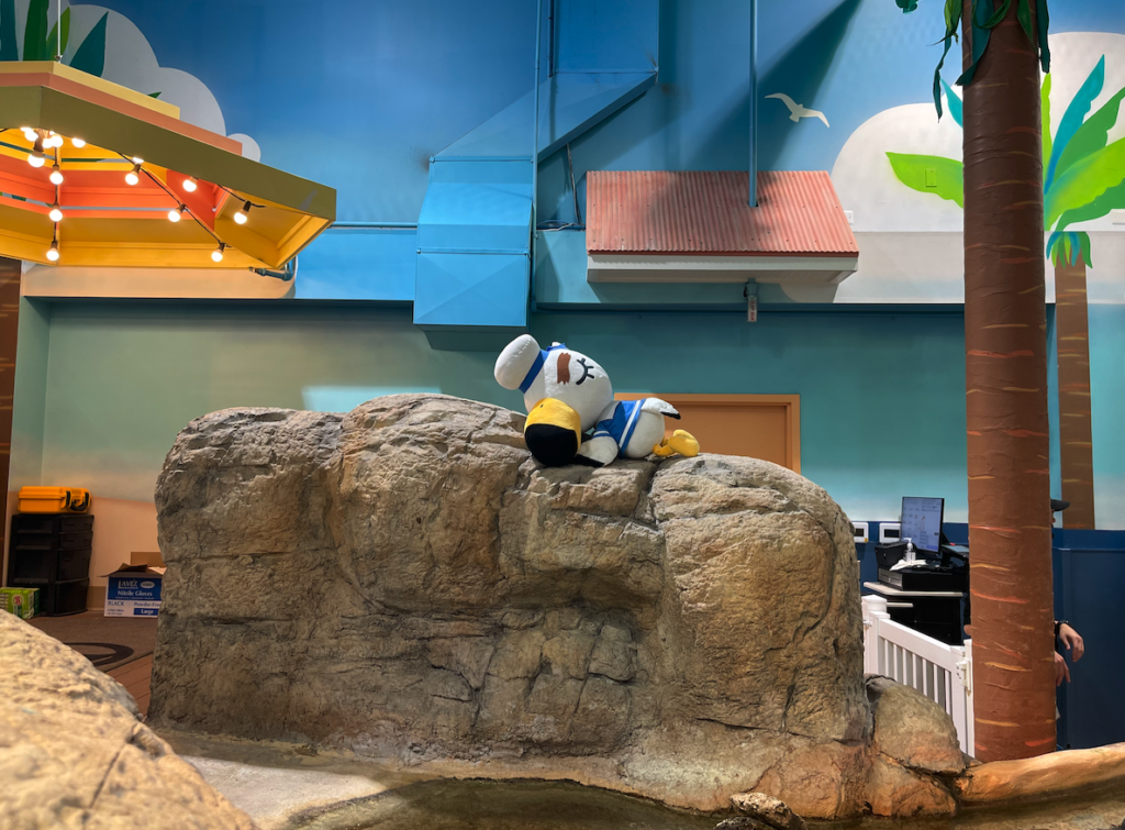 Most aquariums will hold “stamp rallies” from time to time, where they hand out cards and you need to find all the character standees and stamp a spot on the card. You can turn in the card for a small souvenir, typically a sticker, button, or little aquarium-themed trinket. It’s, of course, an homage to the in-game stamp rally to commemorate International Museum Day every May 18 to May 31.