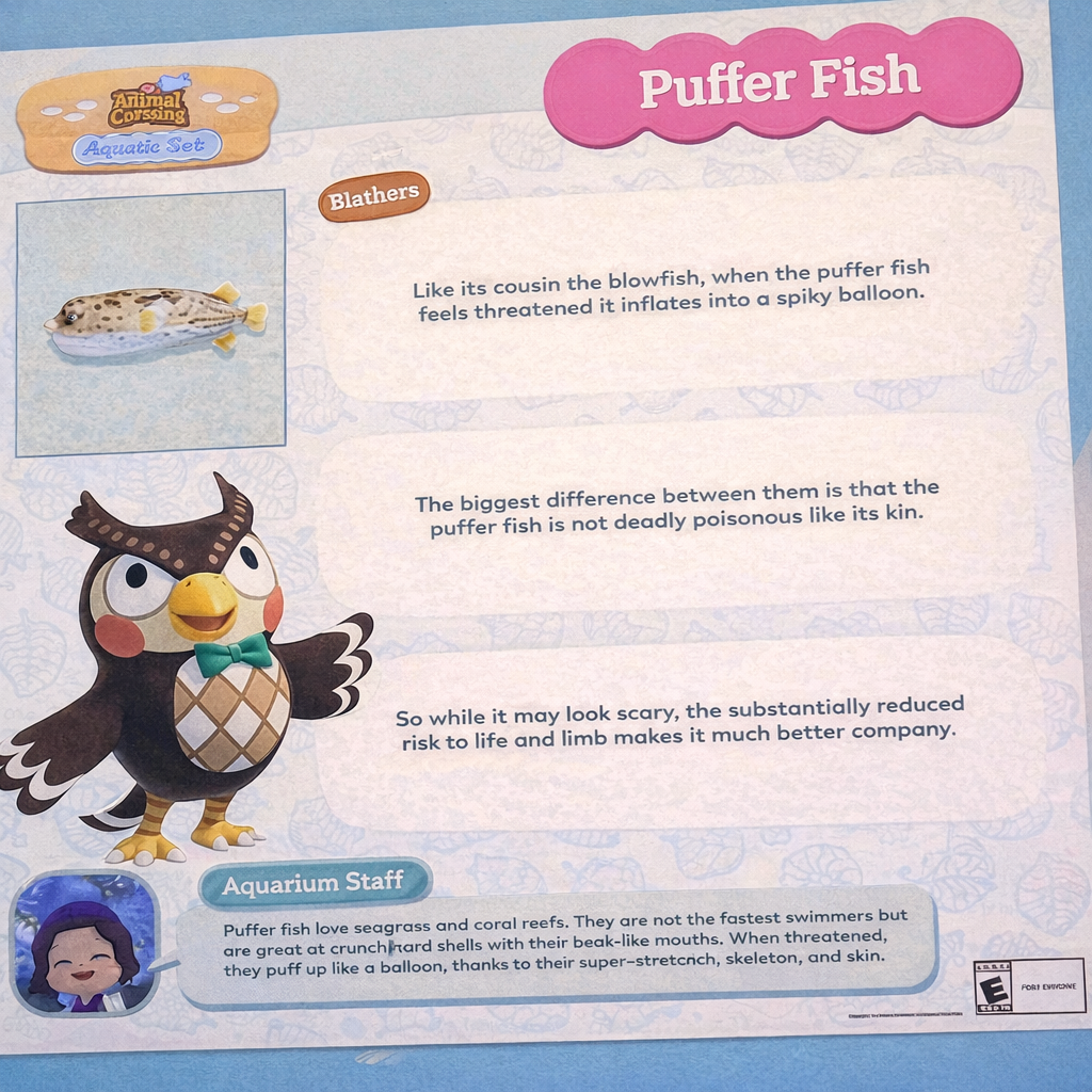 Just like in New Horizons you can furnish your island with “standees”, throughout the aquarium will be standees of favorite characters like Tom Nook, Isabelle, Timmy and Tommy (in the gift shop, of course), Blathers, and Pascal the Otter. They’re not just small cardboard cutouts, but nice acrylic standees that are perfect for photo ops with your family.